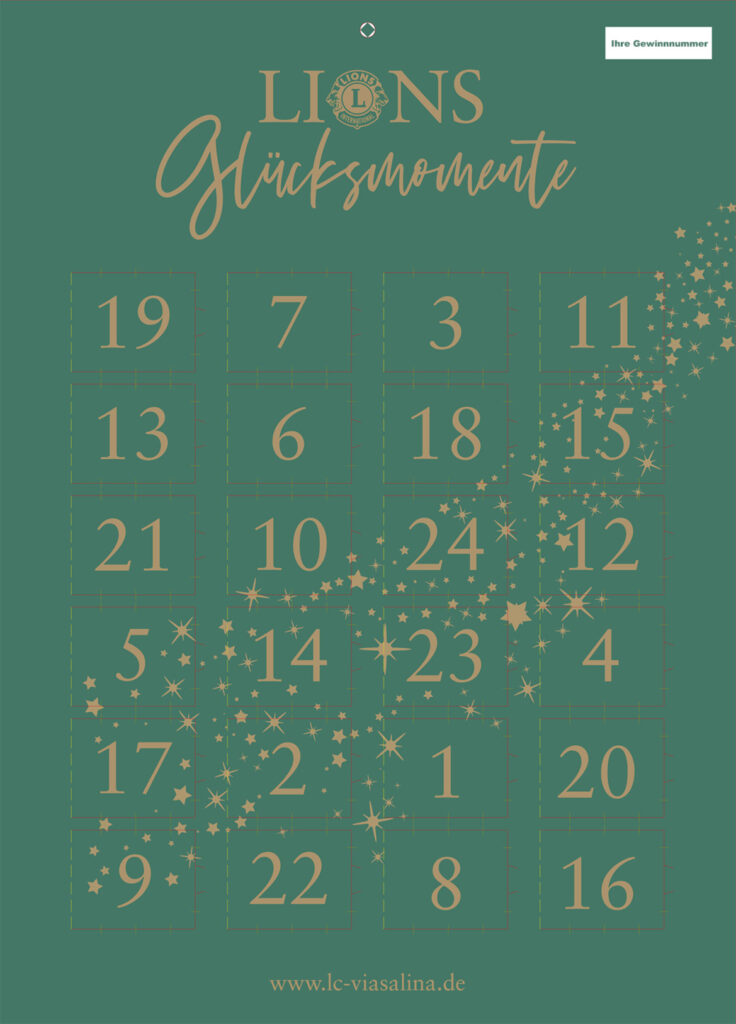Auch im Jahr 2025 wird der Lions Club Oy Via Salina wieder seinen Glücksmomente-Adventskalender anbieten.